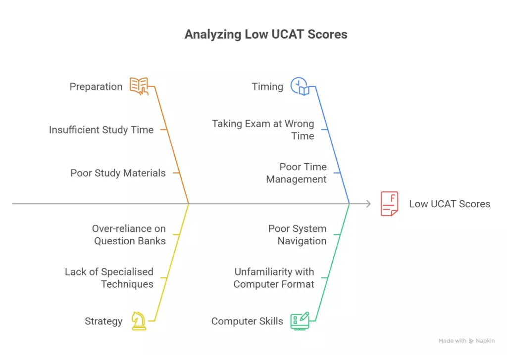 Before looking at alternatives to UCAT, it’s important to understand why so many students get low scores in the 1st place. For an exam that doesn't test academic knowledge, the UCAT often surprises students who study hard but still fail to achieve a high score. The main issues aren't a lack of intelligence, but a lack of specialised strategy. Students often struggle because they: